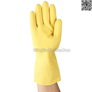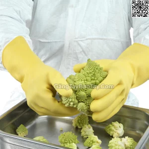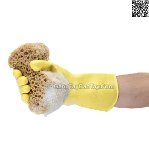 - Găng tay làm bằng cao su tự nhiên, được lót 100% vải cotton flock để mang lại cảm giác thoải mái hơn.