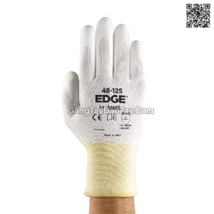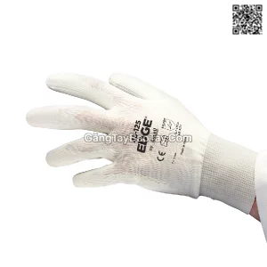 - Găng tay lao động công nghiệp EDGE 48-125, 48-126 và 48-129 kết hợp một lớp lót dệt kim liền mảnh với phần cổ tay dệt kim co giãn được nhúng vào lớp phủ polyurethane màu đen, trắng hoặc xám.