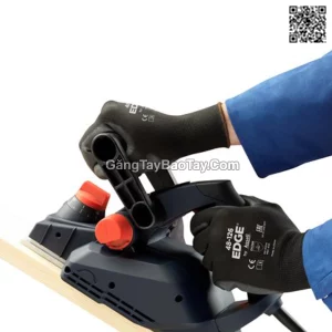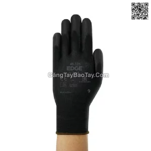 - Găng tay lao động công nghiệp EDGE 48-126 kết hợp một lớp lót dệt kim liền mảnh với phần cổ tay dệt kim co giãn được nhúng vào lớp phủ polyurethane màu đen.
