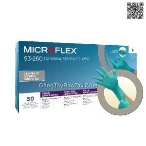 - Găng tay dùng một lần chống hóa chất MICROFLEX 93-260 đáp ứng các yêu cầu đối với cả chứng nhận EN 374 ở Châu Âu và chứng nhận KOSHA ở Hàn Quốc. Khi được thử nghiệm chống lại các hóa chất mạnh như Axit sulfuric, N Heptane, Hexane và Methanol, những chiếc găng tay nitrile và neoprene này cho thấy thời gian thẩm thấu ấn tượng.